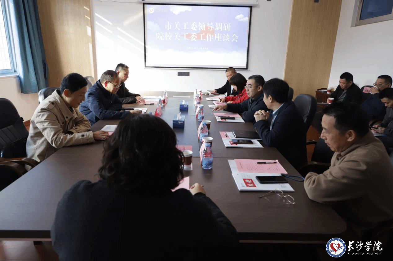 12月11日,长沙市管院校关工委工作座谈会在我校召开。市关工委常务副主任卢鸿鸣、秘书长彭钰鑫一行,校党委委员、副校长何利华,以及长沙商贸旅游职业技术学院、长沙职业技术学院、长沙卫生职业学院、湖南信息职业技术学院、长沙学院等5所市管院校关工委负责人出席会议。