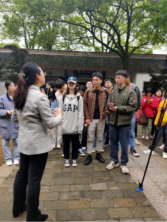 2021年4月10日上午,长沙学院马克思主义学院组织带领长沙学院青年马克思主义学习研究会50名会员赴岳麓书院开展“赓续红色基因,担当复兴使命”党史游学及移动思政课教学活动。此次活动由马克思主义学院党总支书记谷建春亲自带队,邢爽博士担任主讲教师。同学们集中学习了习近平总书记考察岳麓书院的讲话精神,体悟“实事求是”思想路线策源地的重要论述的内涵及其对中国革命、建设、改革各时期产生的重要作用,联系个人学习生活实际思考“实事求是”精神的价值。