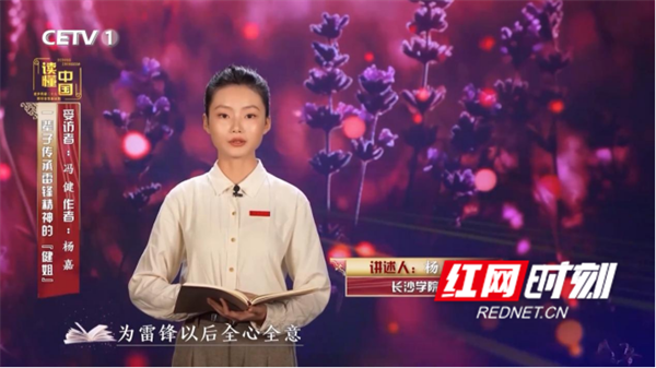 长沙学院杨嘉同学在节目中讲述征文作品《一辈子传承雷锋精神的“健姐”》